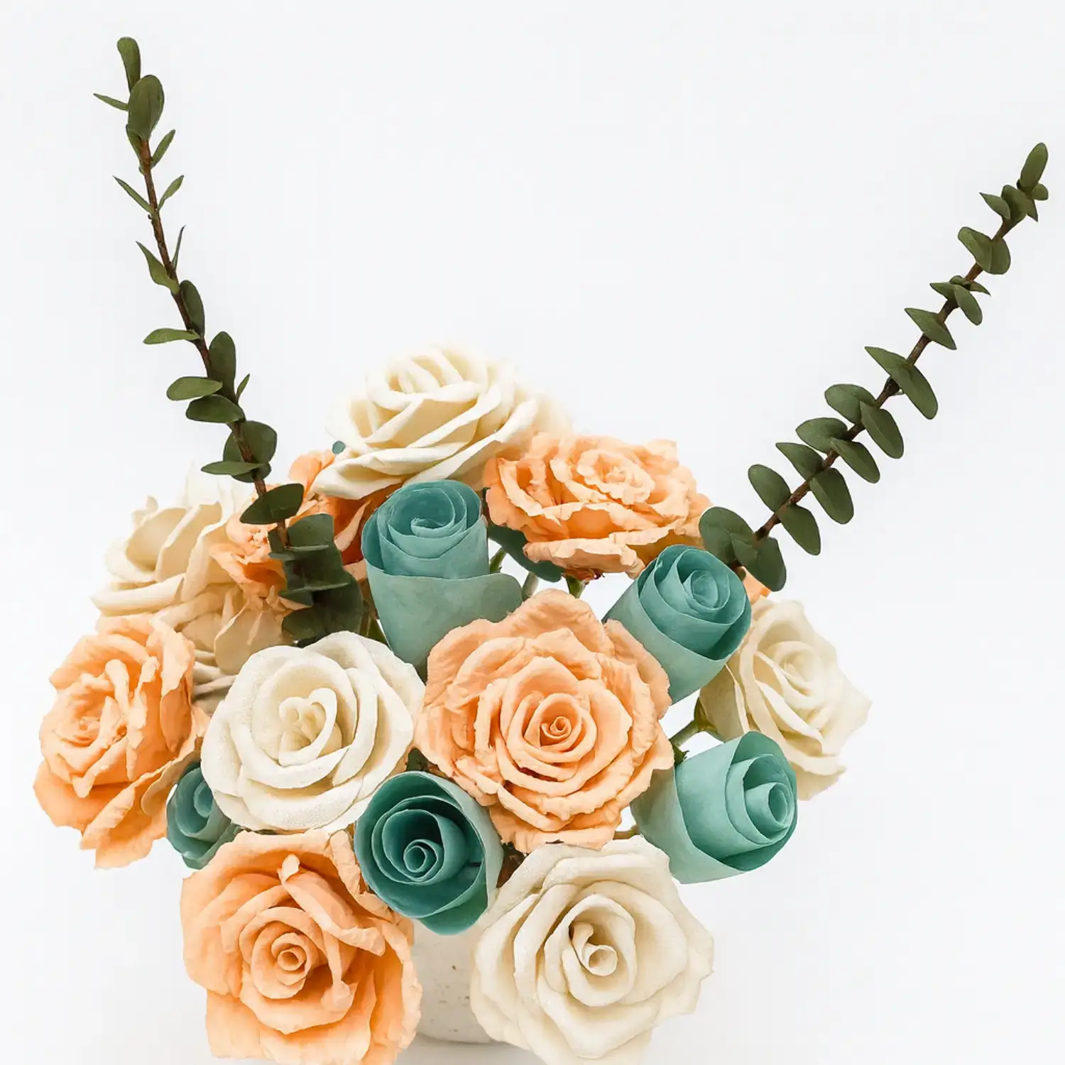 A diferencia de los ramos frescos que duran pocos días, este ramo de flores de tela premium mantiene su belleza durante años, sin mantenimiento, sin marchitarse y sin perder color. Es un regalo que perdura en el tiempo, tal como los mejores momentos compartidos.